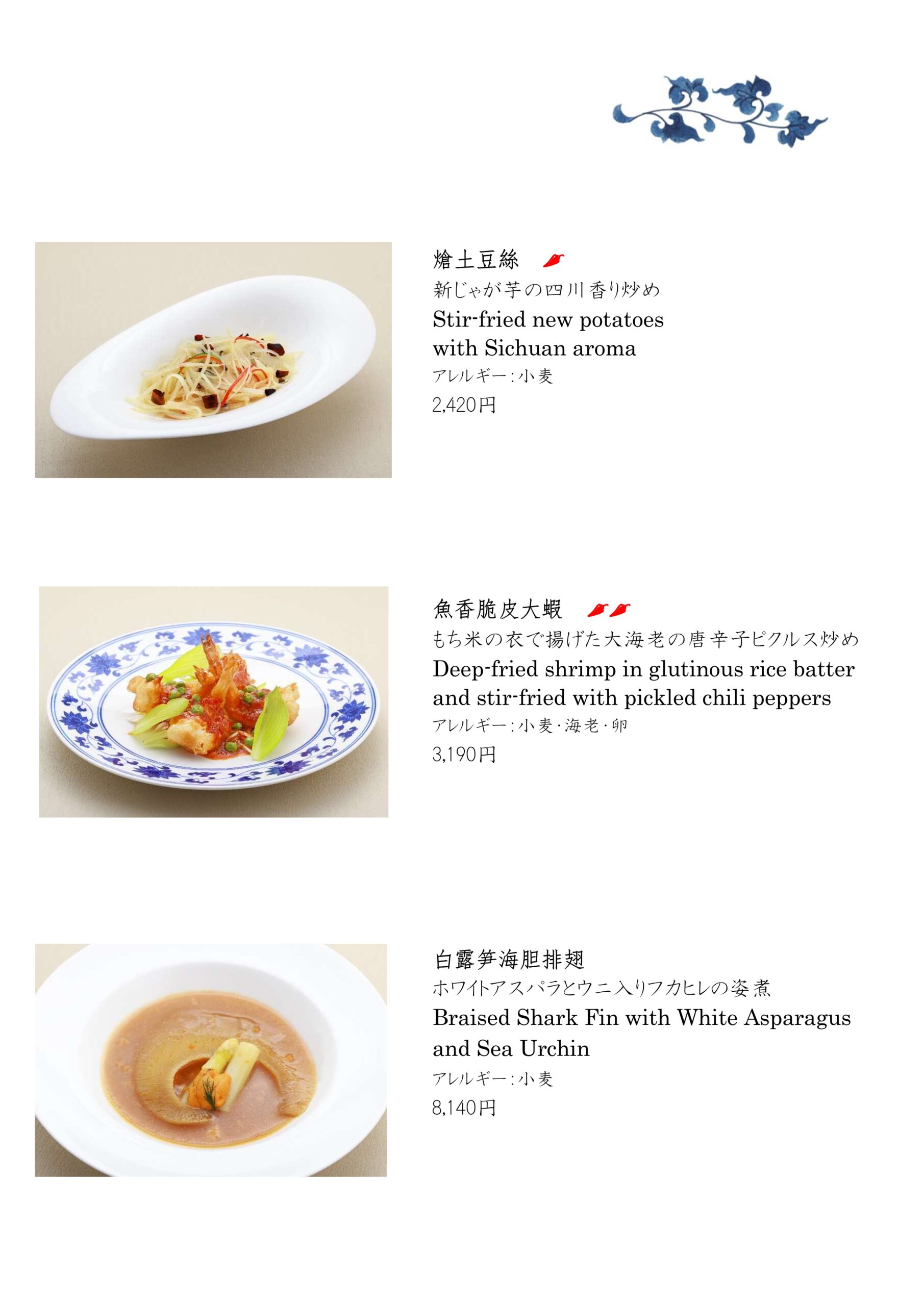 専門家たちが日本一と評した麻婆豆腐、若き井桁を魅了した回鍋肉、地元でも愛される汁なし担々麺など、飄香には数々の名物料理・人気料理が存在しています。もちろんこれらはいずれもアラカルトでお楽しみいただけます。厳選された中国酒やワイン、中国各地から取り寄せたお茶など、ドリンクも豊富にご用意しています。